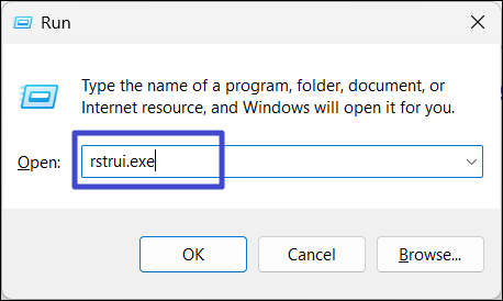 1。Windows + Rを押し、「入力」と入力しますrstrui.exe」箱の中で、Enterを押してください。