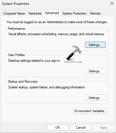 ステップ2-次に、パフォーマンス以下で、[設定]を選択します。次に、[データ実行予防]タブにアクセスします。