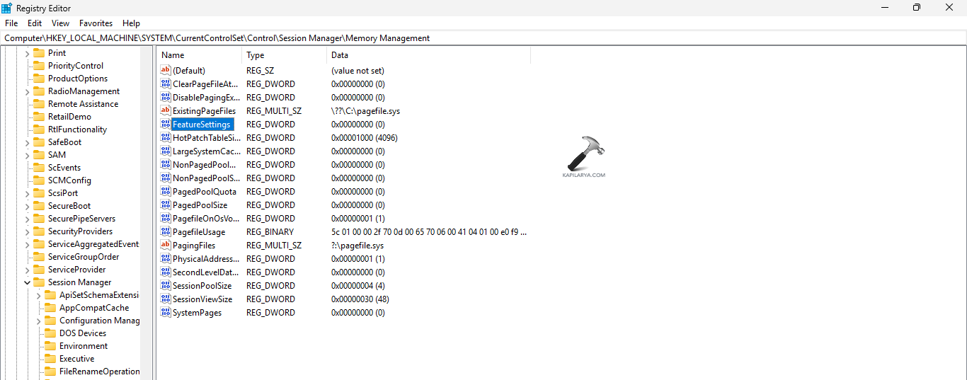 HKEY_LOCAL_MACHINESYSTEMCurrentControlSetControlSession ManagerMemory Management