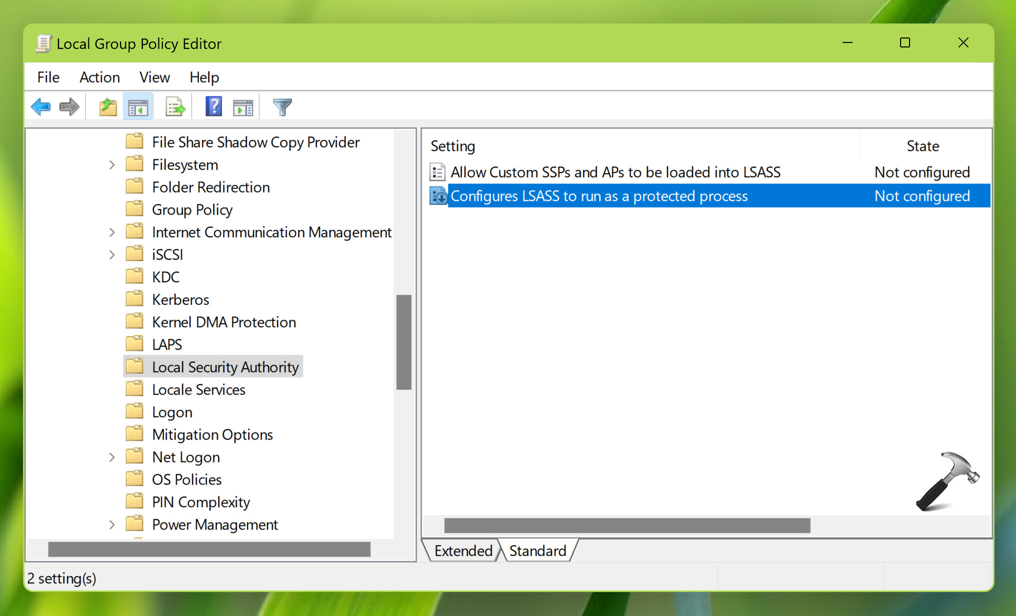 Windows 11で欠落しているローカルセキュリティ局(LSA)オプション