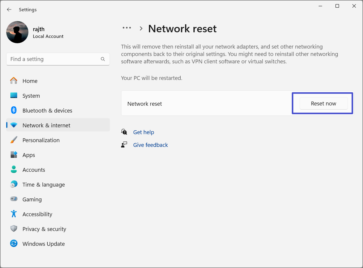 3。高度なネットワーク設定で、選択します。ネットワークリセット「。
