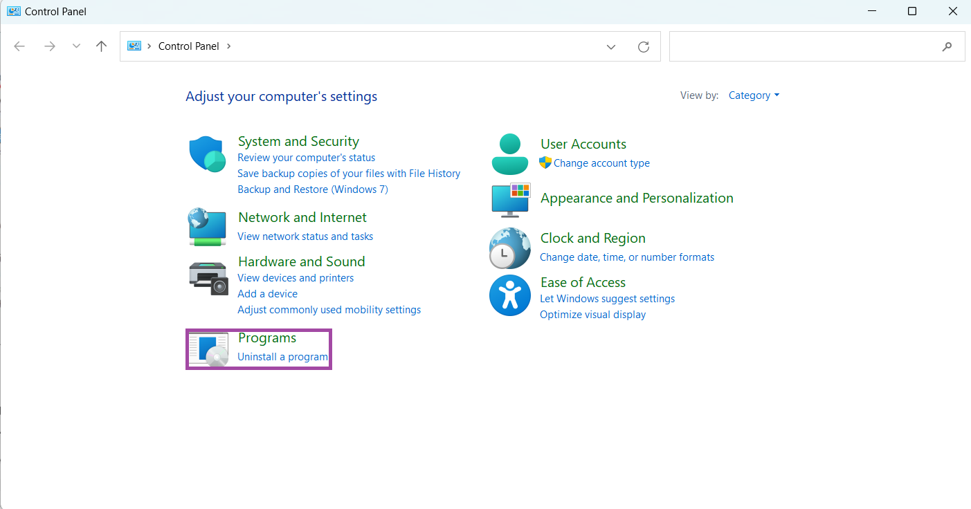 - 開きますコントロールパネルクリックしてくださいプログラム。