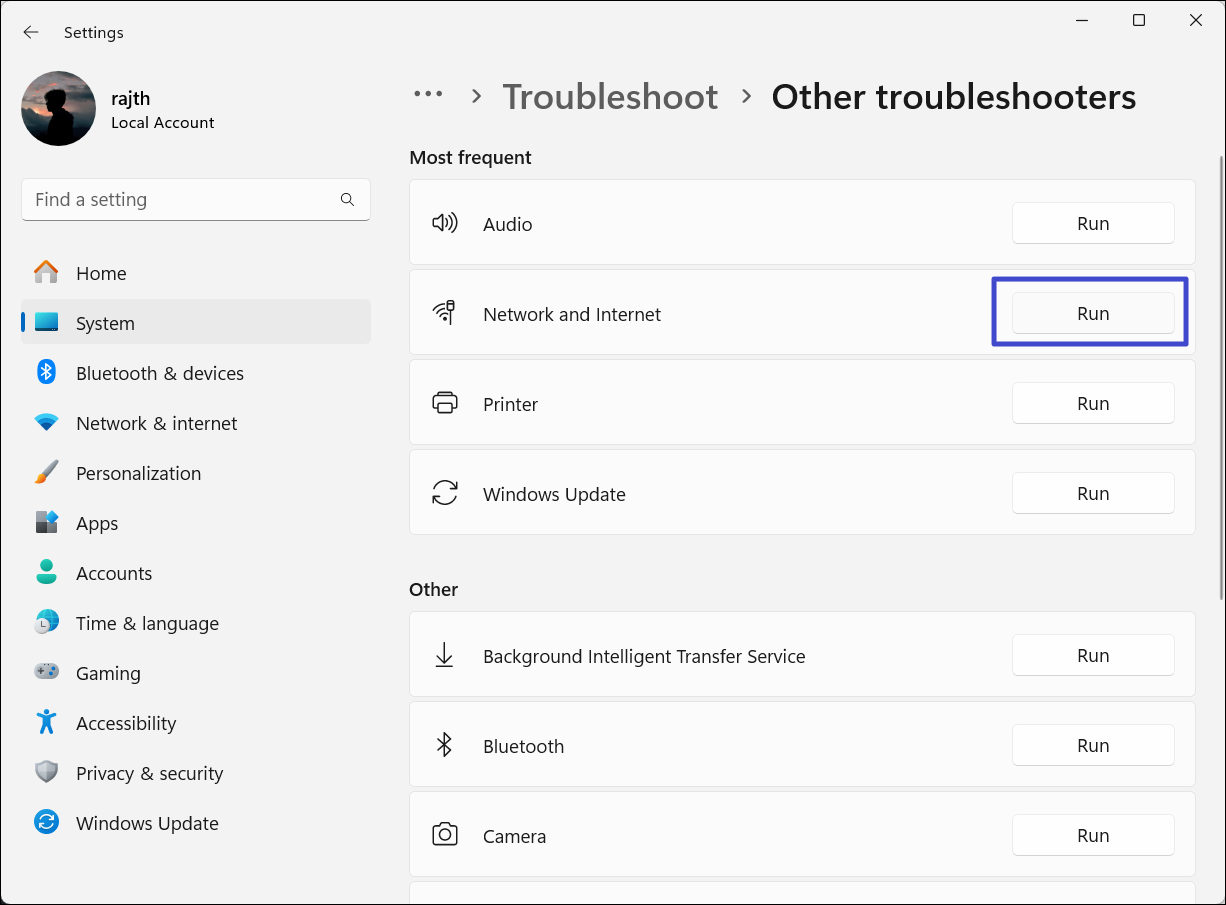 2。オプションのトラブルシューティングで、「」をクリックします。その他のトラブルシューター「。