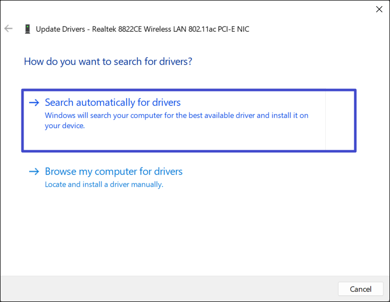 4。選択ドライバーを自動的に検索します画面上の指示に従ってください。