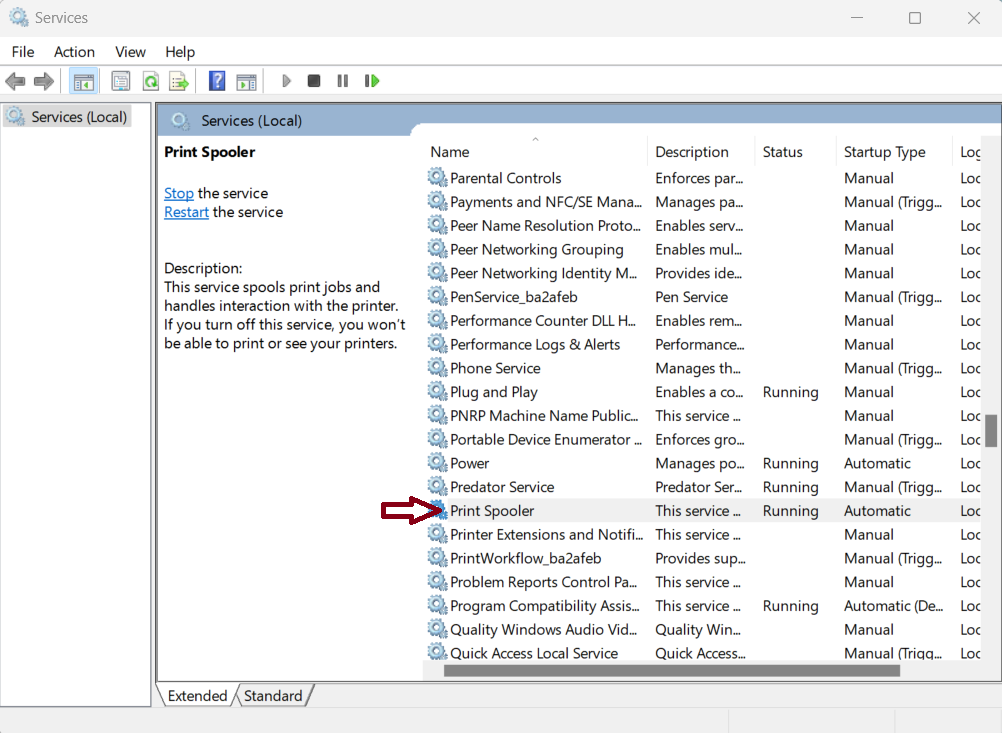 2。印刷スプーラーを右クリックして、停止を選択します。