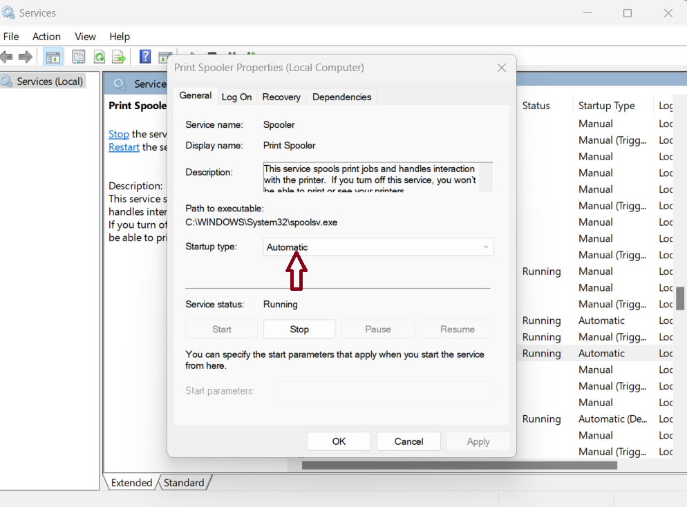 2。印刷スプーラーを右クリックして、[プロパティ]を選択します。