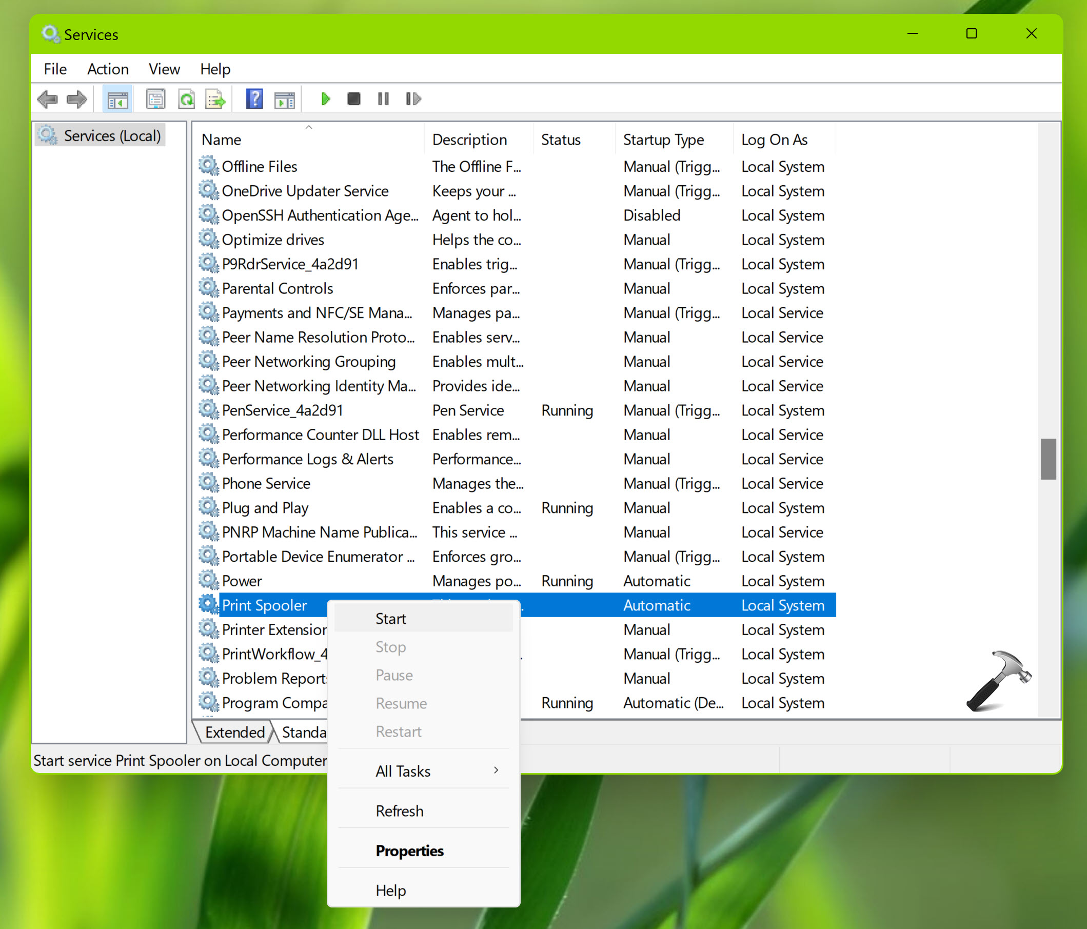 見つけますプリントスプーラーサービス、それはランニングステータスを持っているはずです。
