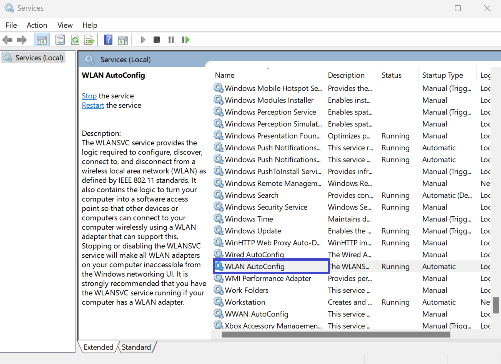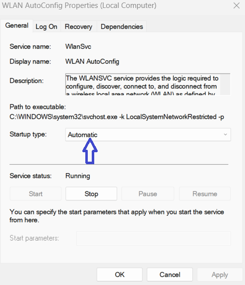 2。WLANAUTOCONFIGをダブルクリックします。