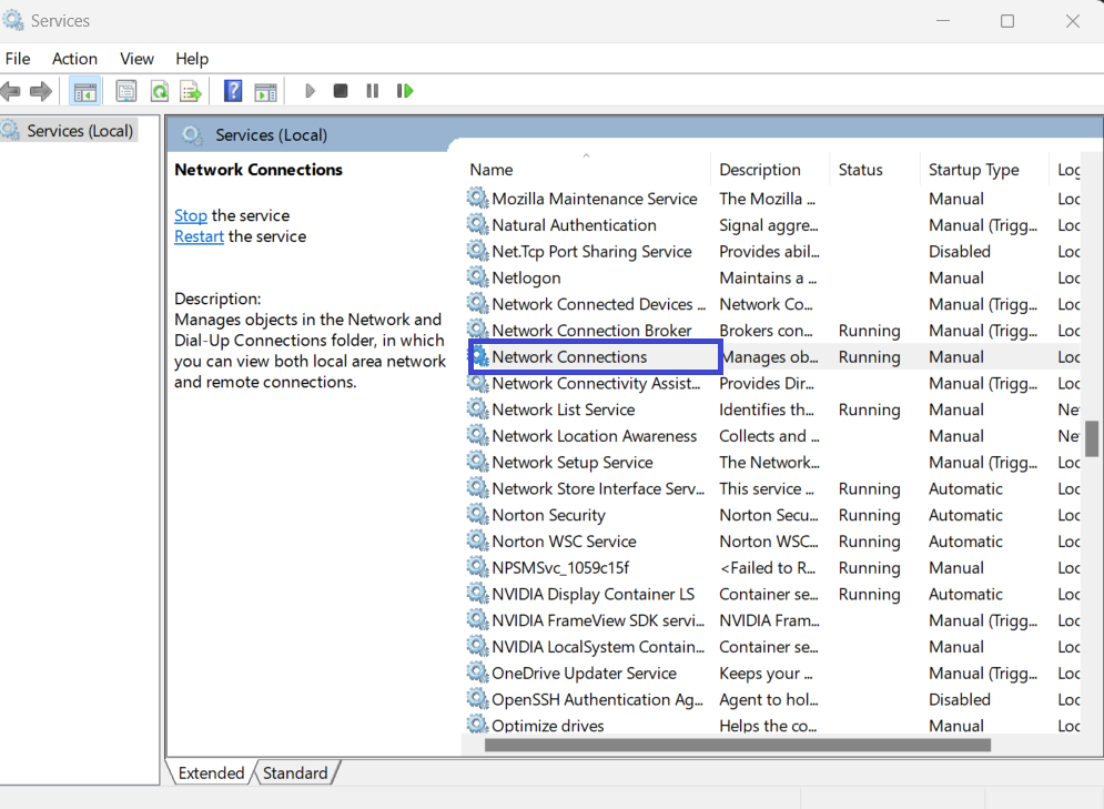 4. [サービス]ウィンドウに戻り、ネットワーク接続をダブルクリックします。