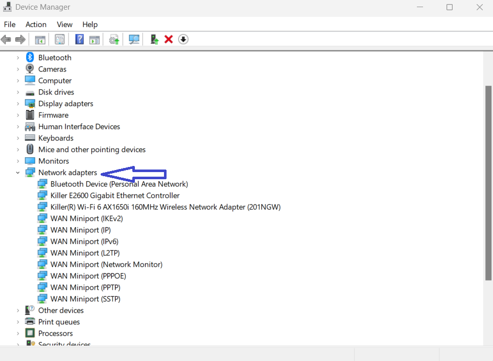 1.デバイスマネージャーを開き、ネットワークアダプターをクリックします。
