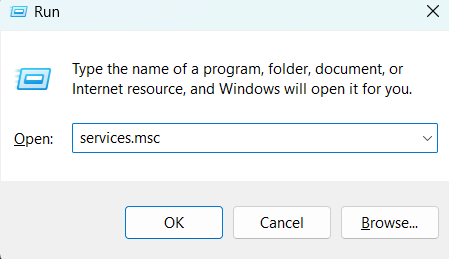 2。services.mscを入力し、Enterを押します。