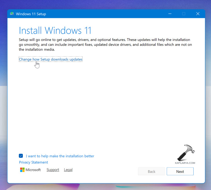 4。[Windows 11セットアップ]画面で、クリックしますセットアップのダウンロード方法を変更します。