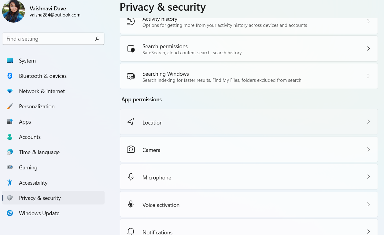 - 設定を開き、プライバシーとセキュリティセクションに移動します。