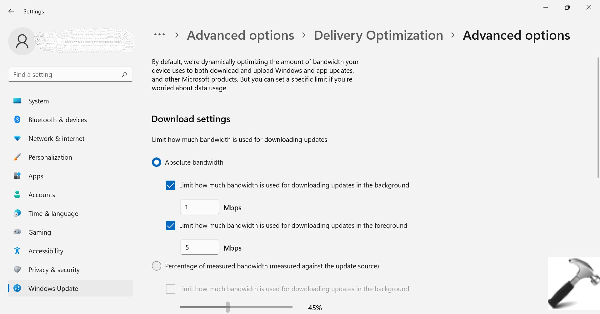 方法5:更新の帯域幅を下げることにより、Windows11の遅いインターネットを修正