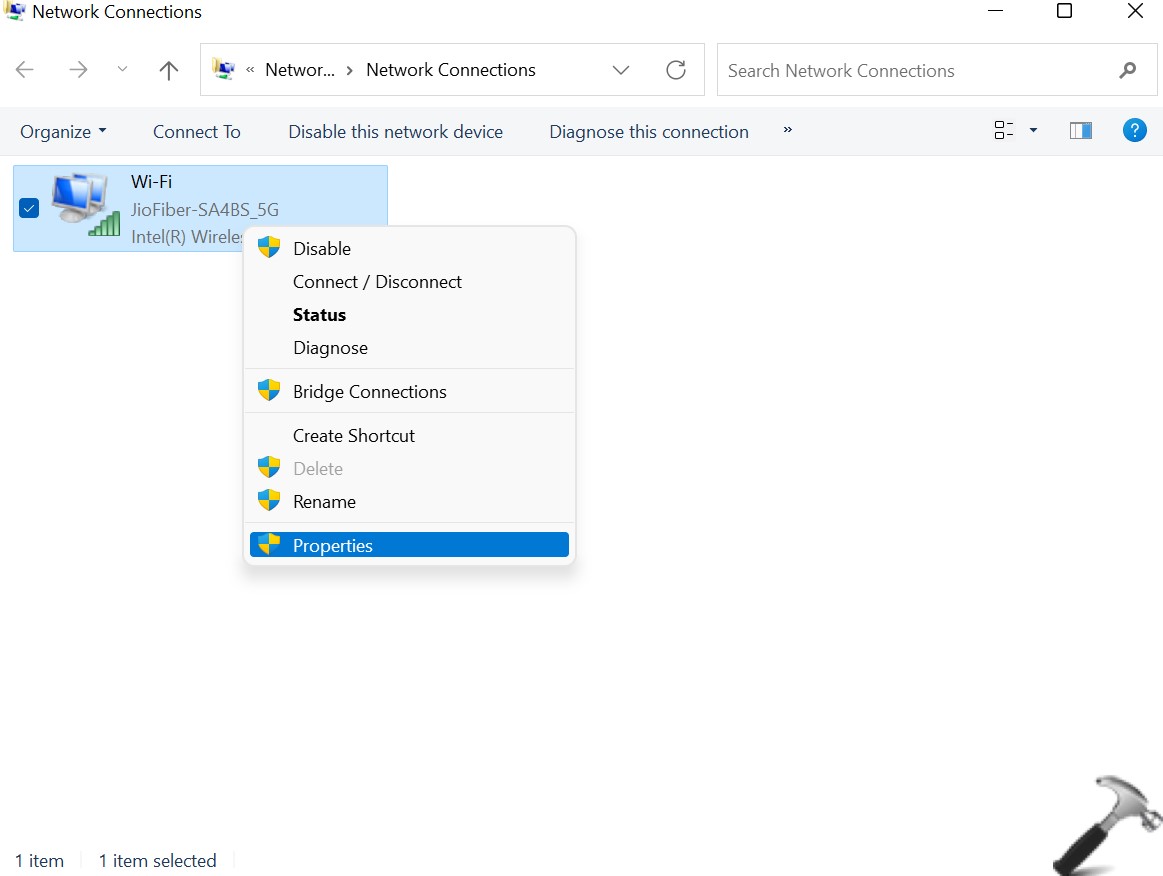 3.選択ネットワーク接続ウィンドウ。次に、右クリックしますインターネット接続Pを選択しますroperties。
