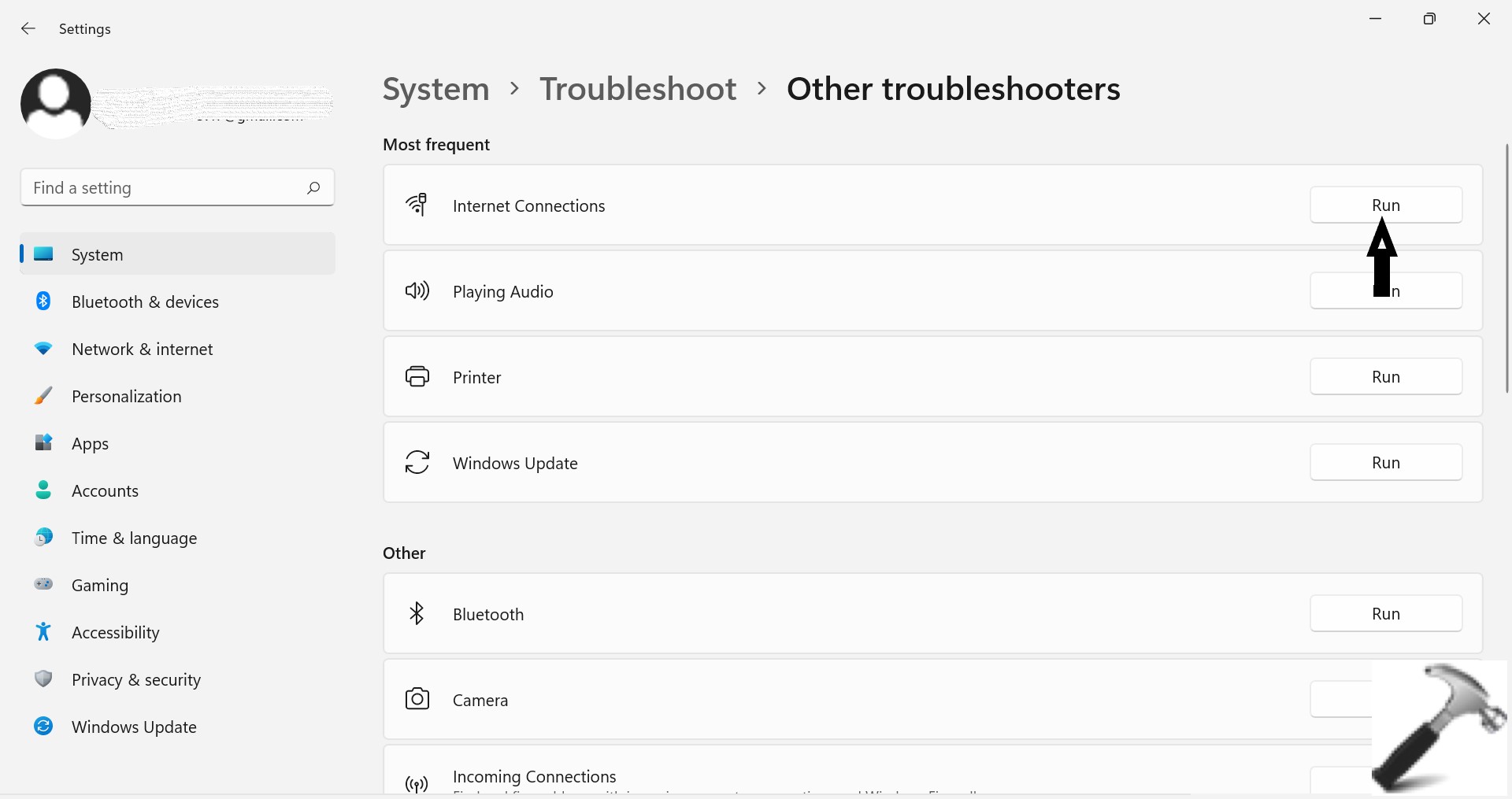 3。押しつけます走る横にボタンインターネット接続トラブルシューティング。
