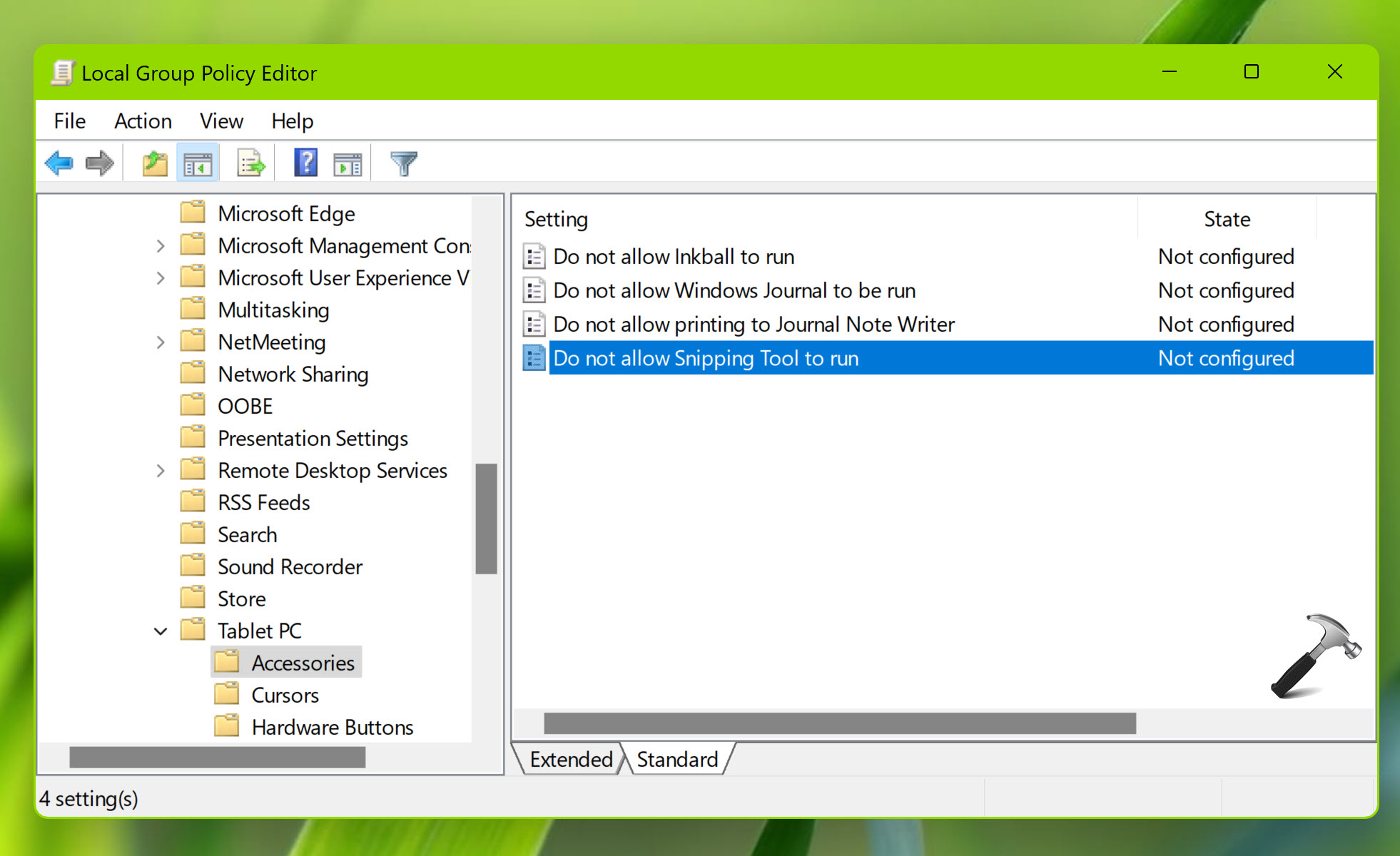 4.完了したら、グループポリシーエディターを閉じてシステムを再起動すると、スニッピングツールが復元されます。
