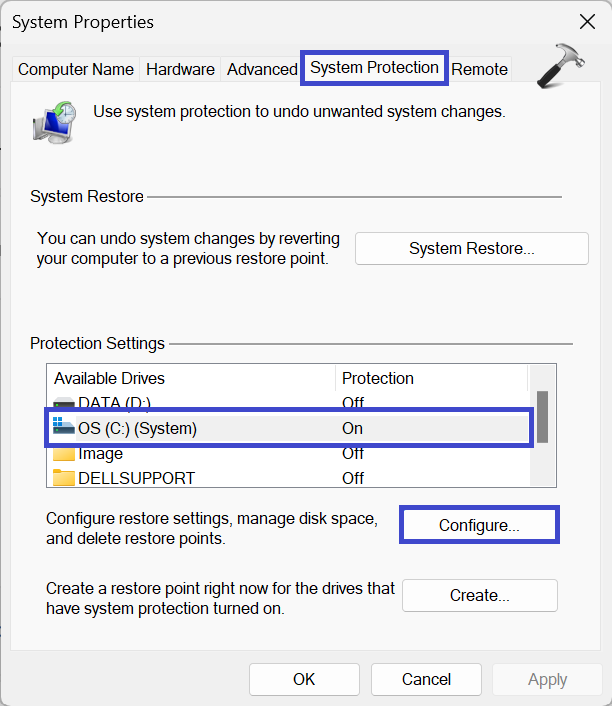 - システム保護は無効です:システムの復元機能は、ハードドライブの各ボリュームに対して有効にする必要があるシステム保護に依存しています。特にWindowsブートドライブ(一般的にC:ドライブ)の場合、システム保護がオフになっている場合、システムの復元ボタンはグレーアウトされます。