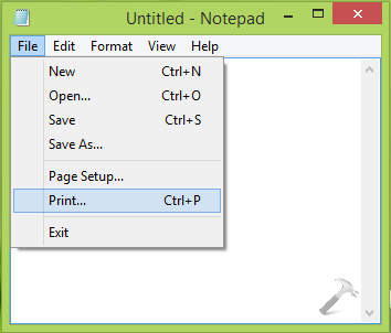 1。オフィスコンポーネントを閉じてメモ帳を開き、クリックしますファイル- >印刷または押しますCtrl+p重要な組み合わせ。