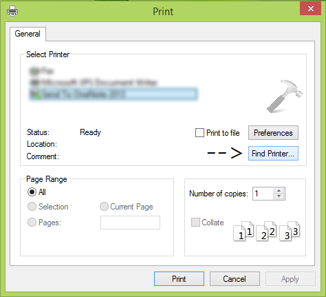 ただし、Internet Explorerまたはその他のアプリケーションを使用して何かを印刷する場合は、システムに簡単に検出されたシステムに接続されています。次に、なぜオフィスコンポーネントのみが同じプリンターを検出できなかったのですか?まあ、そのユーザー許可の問題は、プリンターがオフィスにリストされていないためです。この問題を克服するためにあなたが従うことができる簡単な手順は次のとおりです。