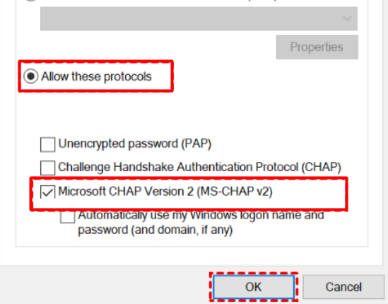 4。Microsoft Chapバージョン2プロトコルとLCP拡張機能をオンにします