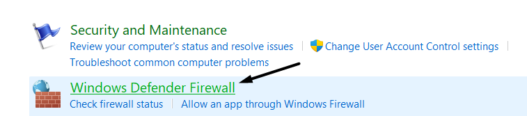 5。でコントロールパネル、以下のパスに進むか、行くかWindows Defenderファイアウォール:
