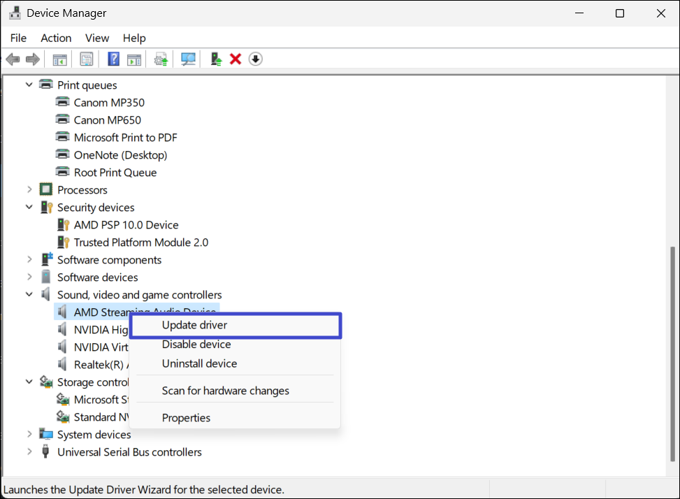 3.次に、故障したデバイスを右クリックして、「」を選択します。ドライバーを更新します「。