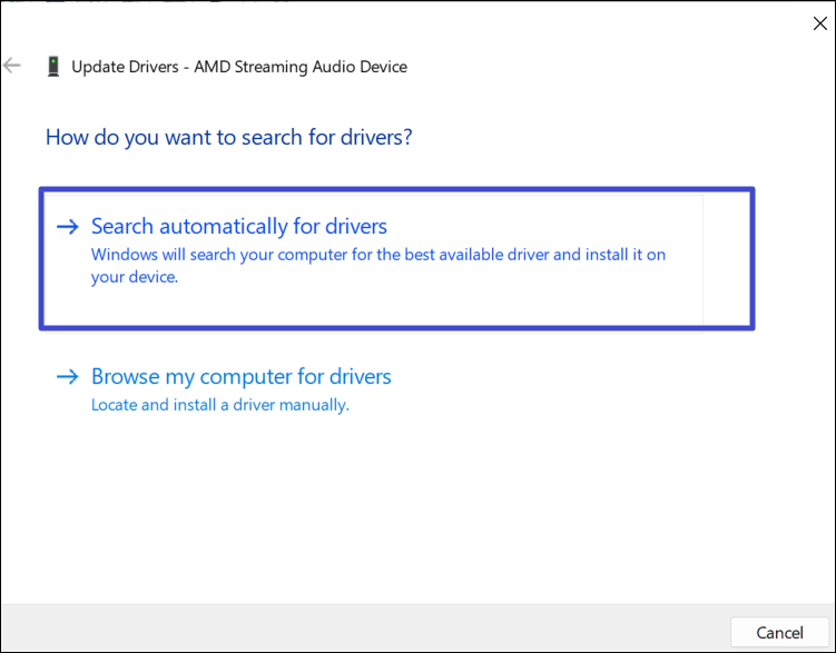 4。その後、選択します。ドライバーを自動的に検索します「。