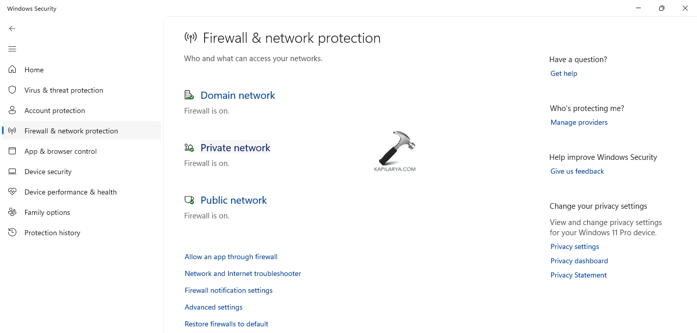 ステップ1-繰り返しますが、Windowsセキュリティを開き、ファイアウォールとネットワーク保護に移動します。