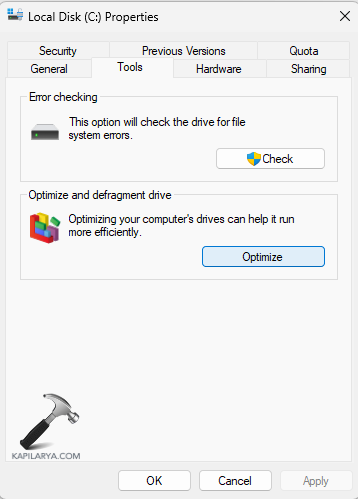 ステップ2-次に、それを右クリックして、[プロパティ]> [ツール]> [チェック]を押します。その後、画面上のプロンプトに従って、ファイルシステムエラーをスキャンして修正します。