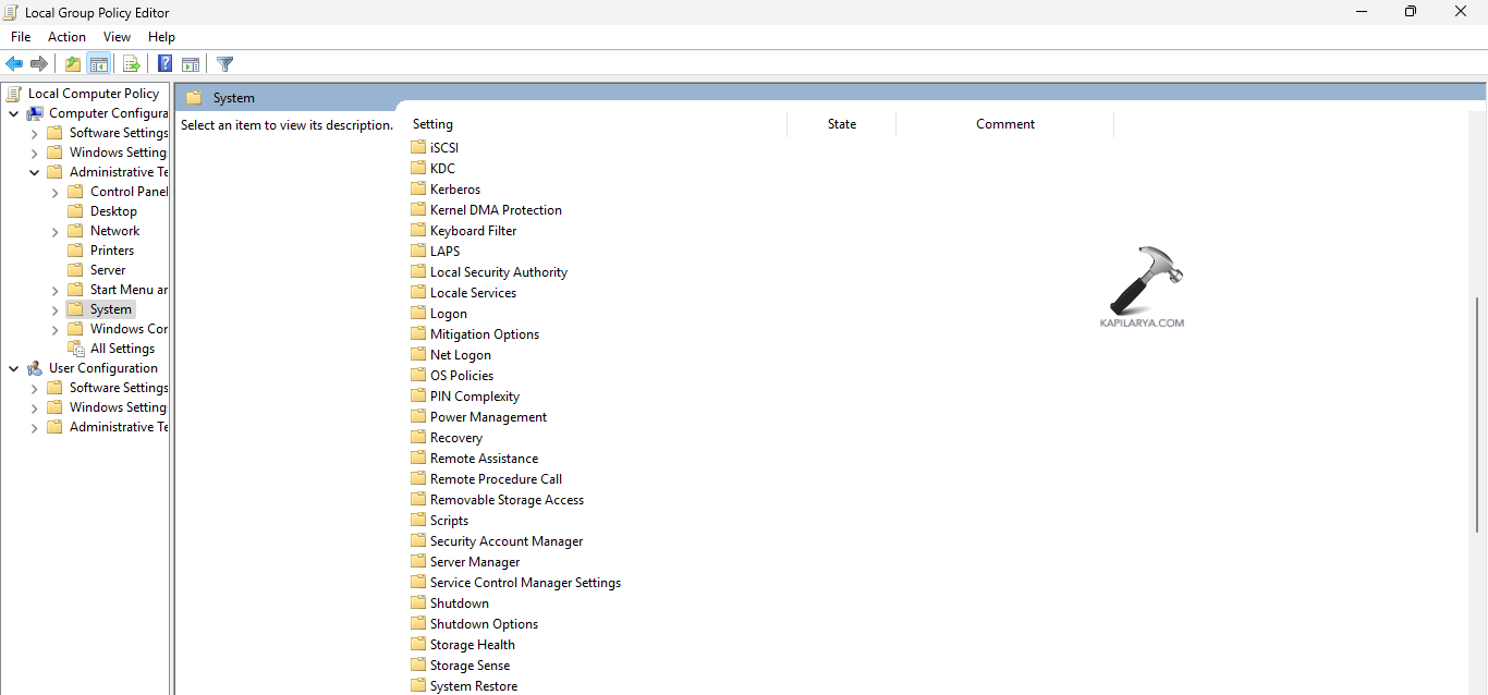 ステップ3-次に、[管理]テンプレート> [システム]> [システムの復元]に移動します。