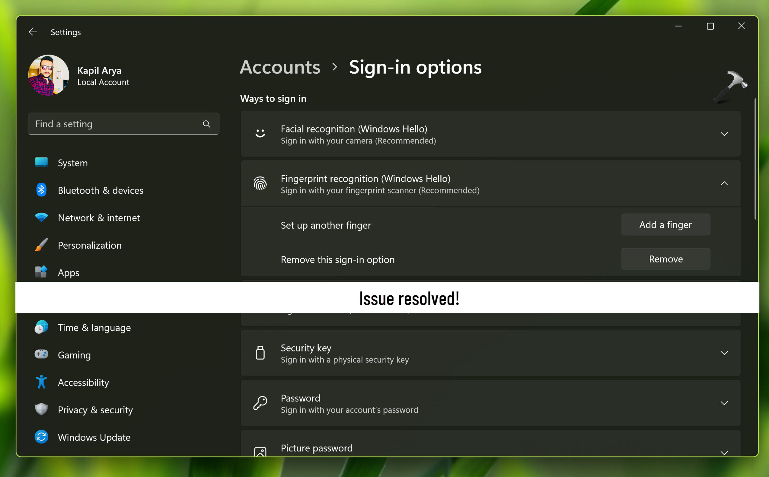Windows 11システムのWindows Hello Fingerprintエラーと互換性のある指紋スキャナーを見つけることができませんでした。