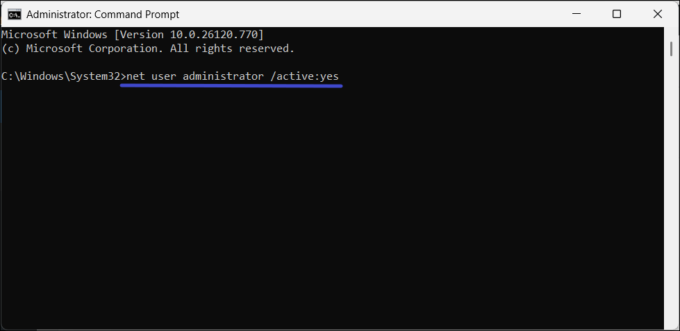 net user administrator /active:yes