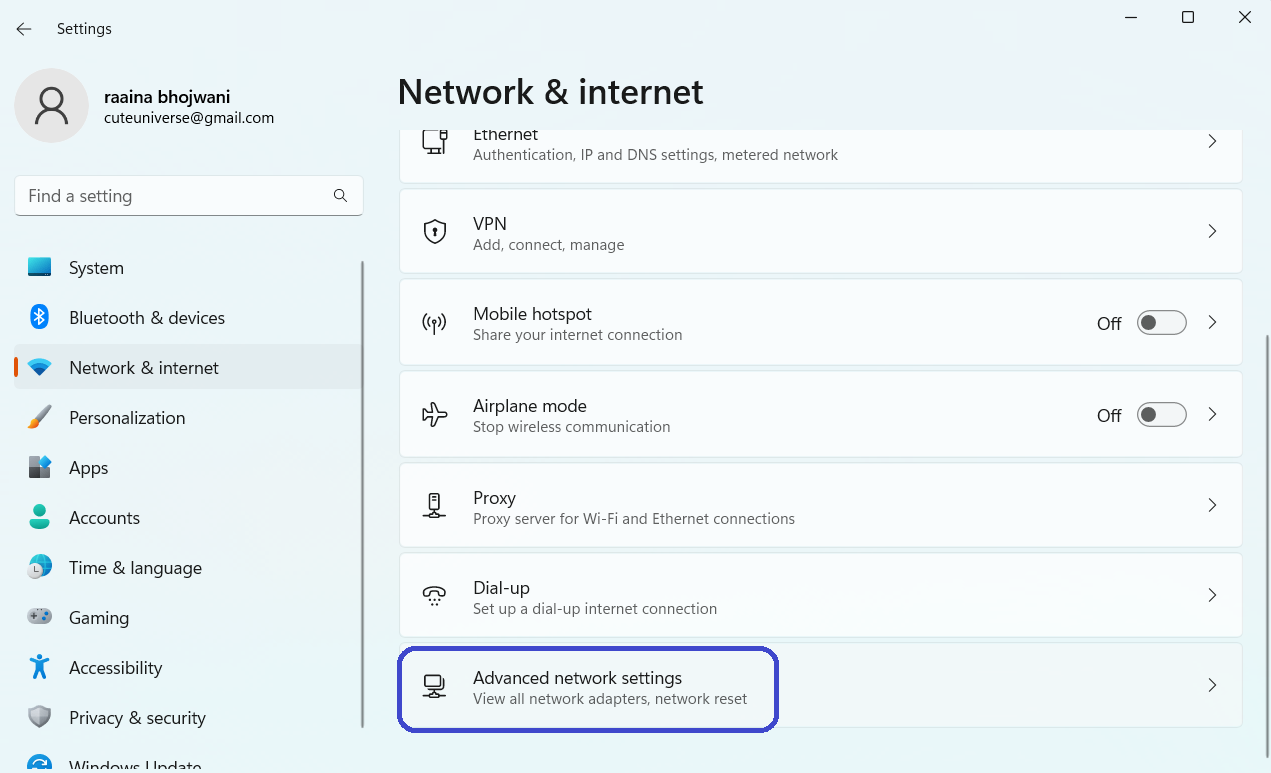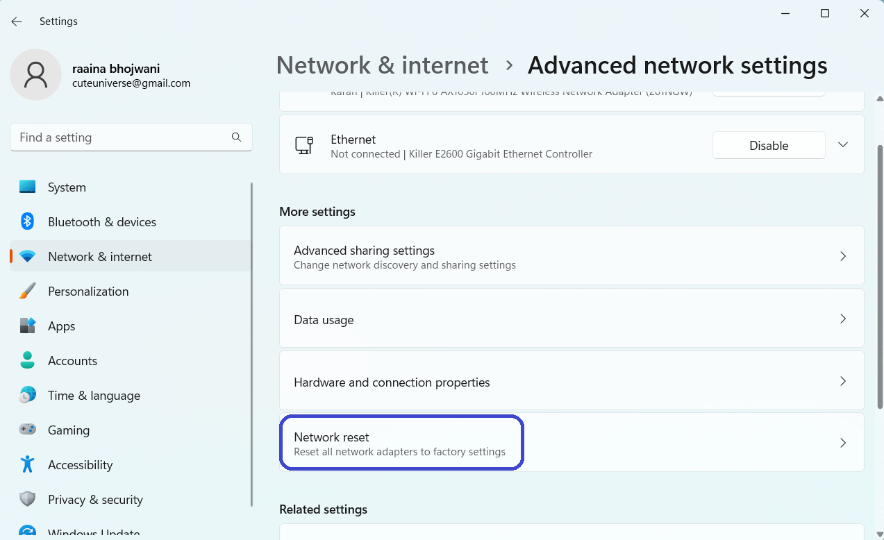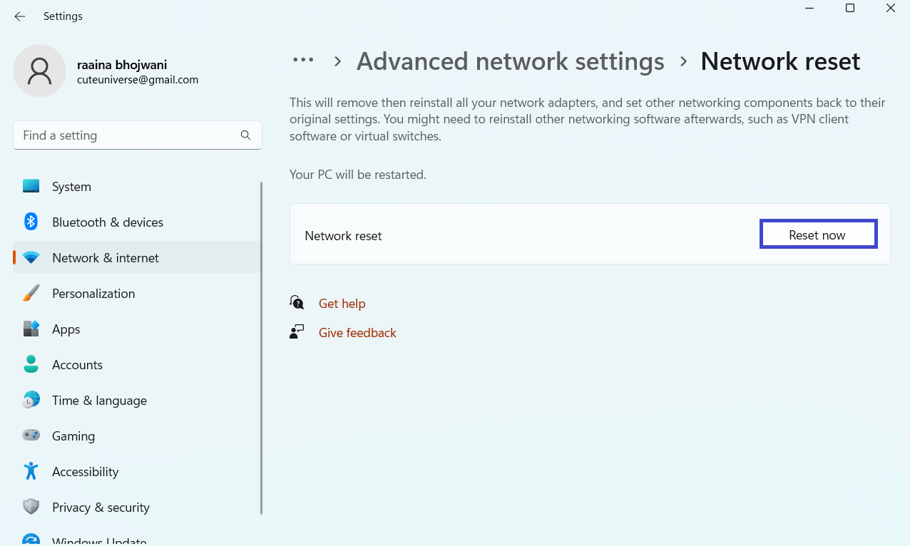 修正4:Windows11イーサネットが機能していない場合は、ネットワーク設定をリセットします