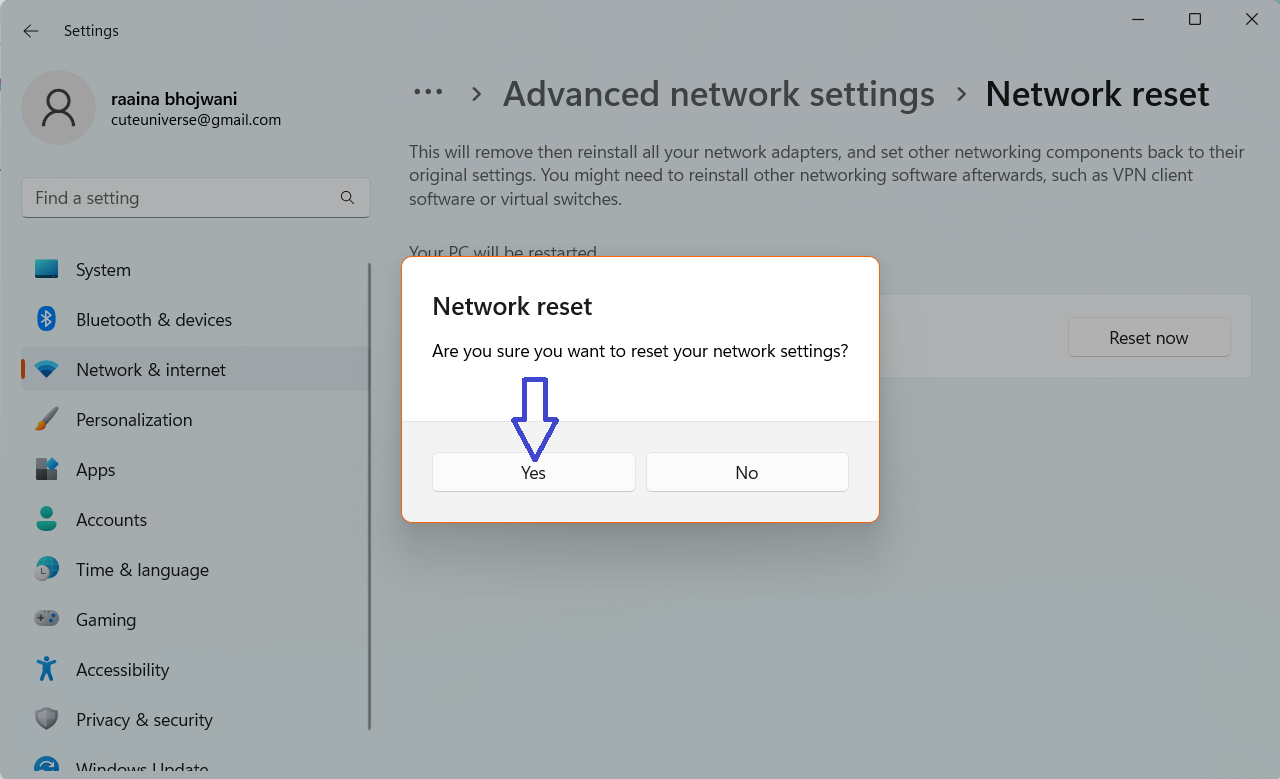 - その後、クリックします今すぐリセットします> [クリック]をクリックしますはい。