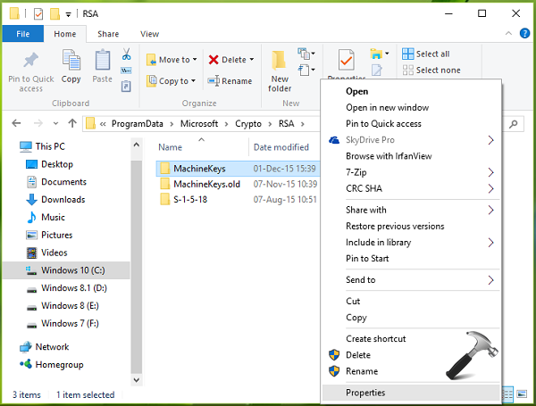 3。次に、RSAフォルダーで、新しいサブフォルダーを作成して名前を付けます機械キー。この新しく作成されたフォルダーを右クリックして選択しますプロパティ。