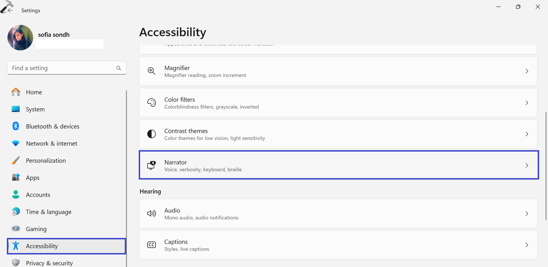 1.設定アプリを開き、[]をクリックします。アクセシビリティ=>ナレーター「。