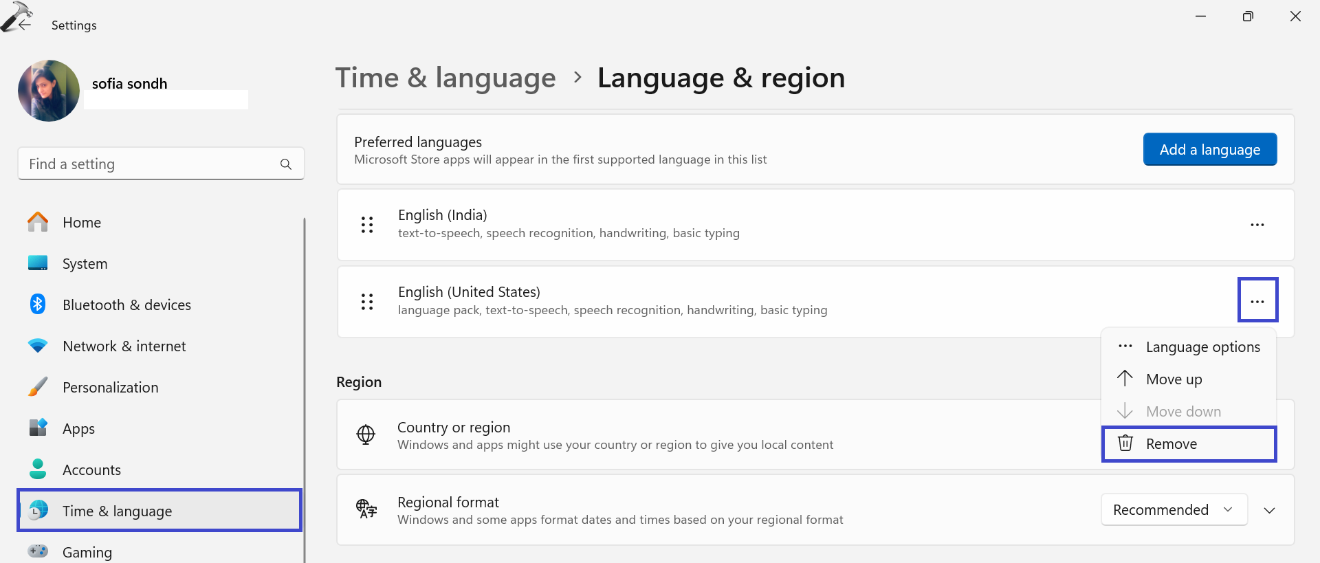 以下は、Windows設定を使用して言語パックを無効にする手順です。