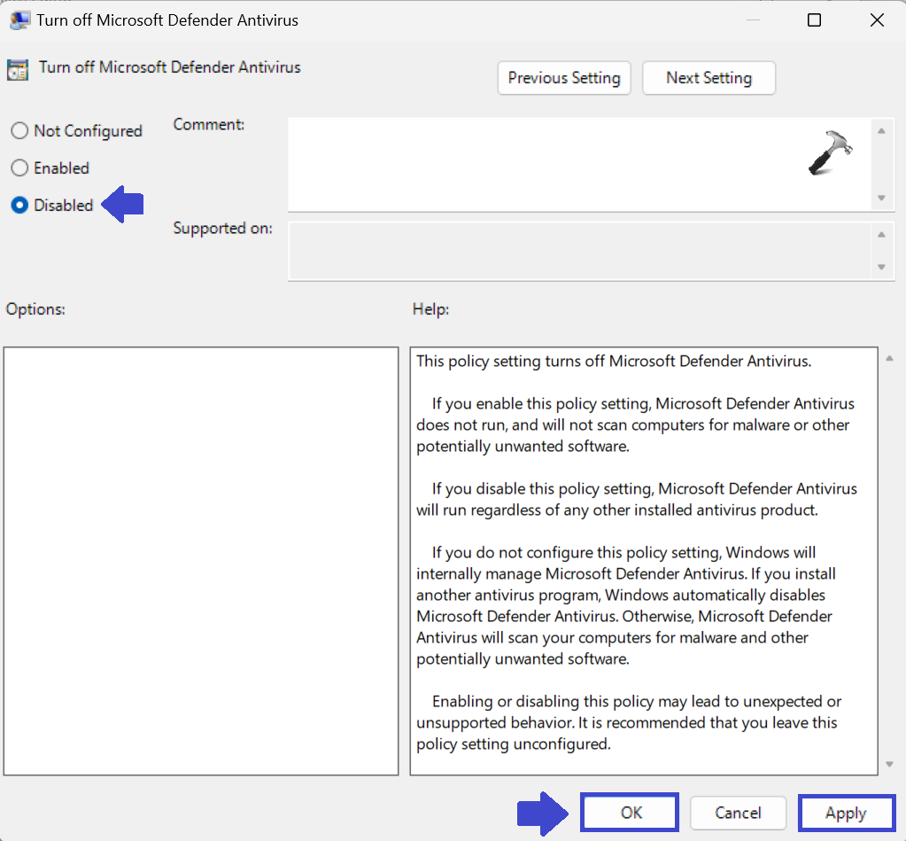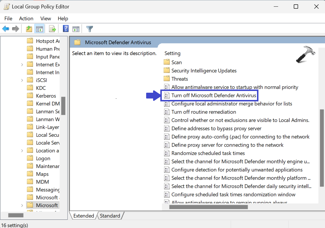 Computer ConfigurationAdministrative TemplateMicrosoft Defender Antivirus