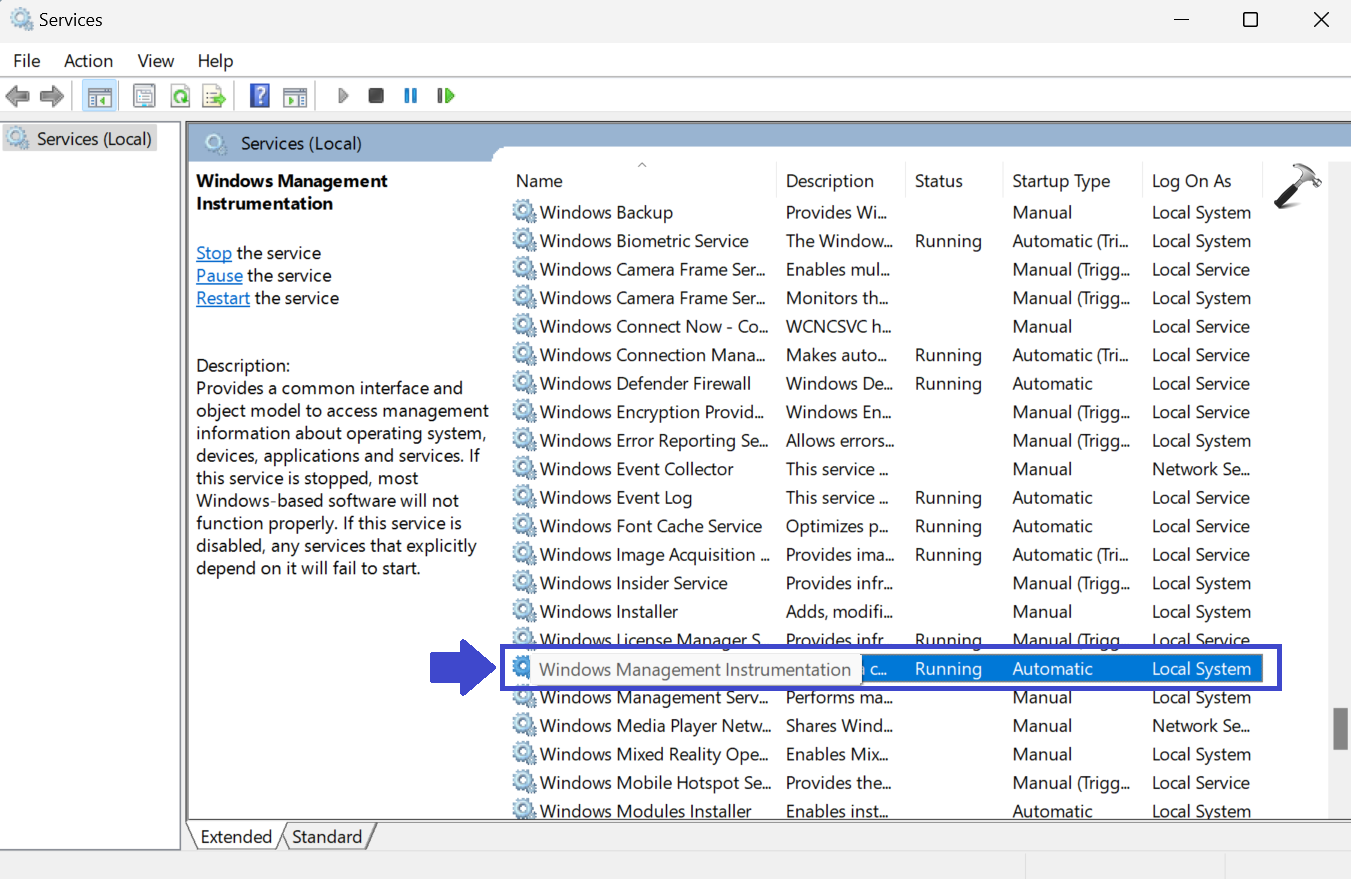 6。サービスリストに戻ります。次に、「Windows Management Instrumentation」サービスを右クリックします。