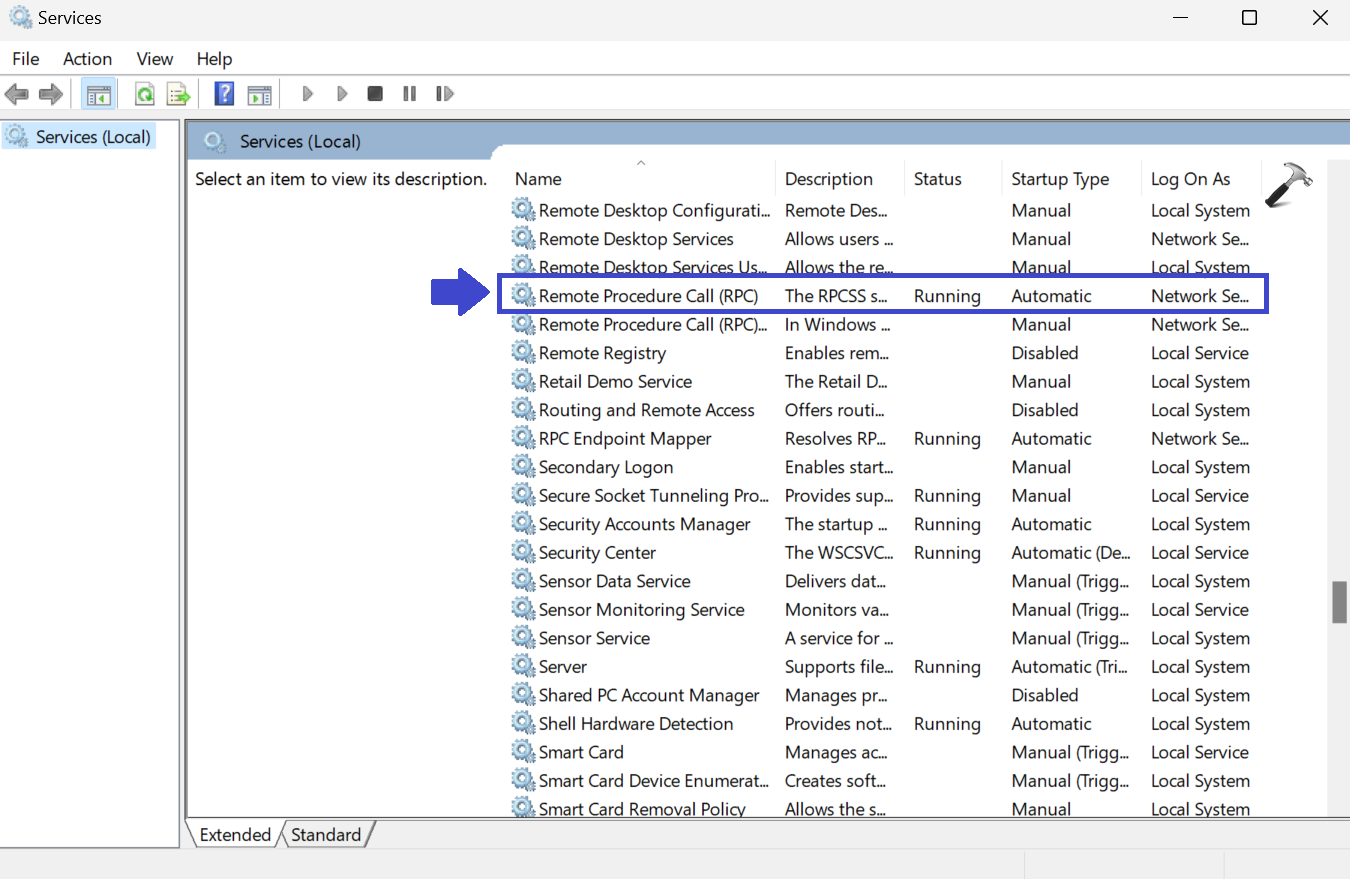 2。右ペインで、「リモートプロシージャコール(RPC)」をダブルクリックします。
