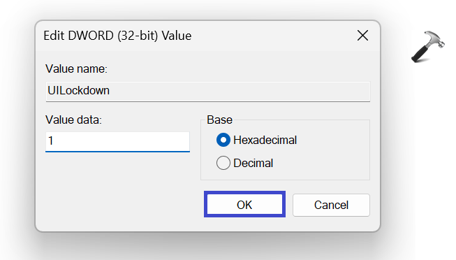 3.次に、「uilockdown」レジストリキーをクリックします。キーがない場合は、作成できます。