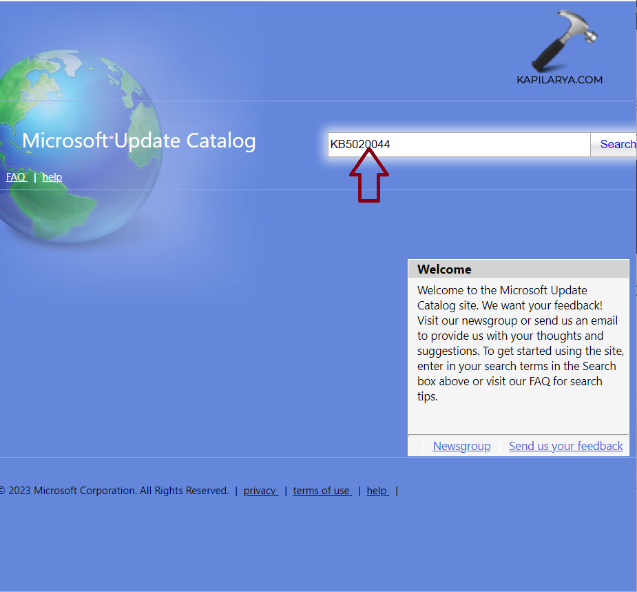 1。開くhttps://catalog.update.microsoft.com別名MicrosoftアップデートカタログWebサイト。