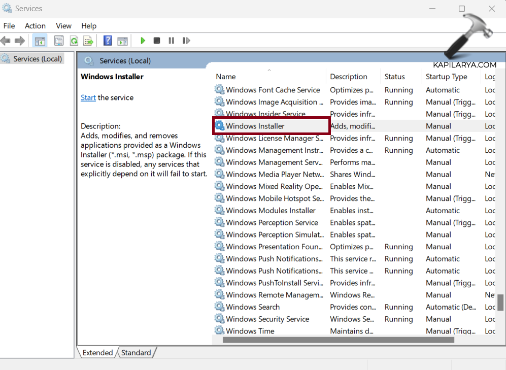 2。「Windowsインストーラー」を右クリックして、「起動」または「再起動」を選択します。どちらのアクティブでも。