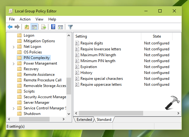修正1:ビジネスポリシーのためにピンの複雑さ/Windows Helloを元に戻します