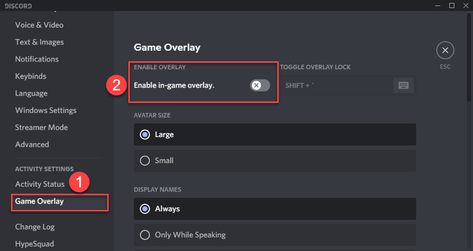 オーバーレイ機能は、ゲームのクラッシュなどのコンピューターパフォーマンスの問題をもたらす可能性のある多くのシステムリソースを利用しています。したがって、起動する前に、不要な背景アプリを終了することをお勧めします。これにより、ゲームの安定性または機能が変化する可能性があります。たとえば、以下の指示を使用して、不一致のオーバーレイをオフにします。