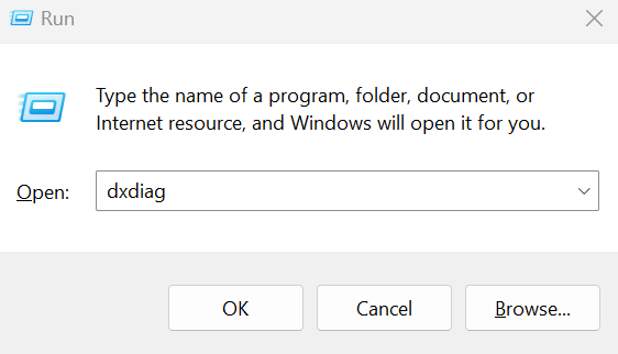ステップ2:タイプdxdiagそしてヒットします入力ボタン。
