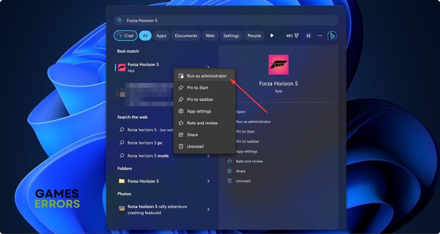 - 開きますスタートメニュー、そして検索しますForza Horizon 5。