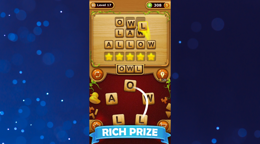 ゲームを開始するとすぐに、クロスワードパズルに示されているように、手紙の手ごろな人が空のボックスが表示されます。ホイールの文字を一緒に結合して、それらの空のスペースに表示される単語を形成する必要があります。
