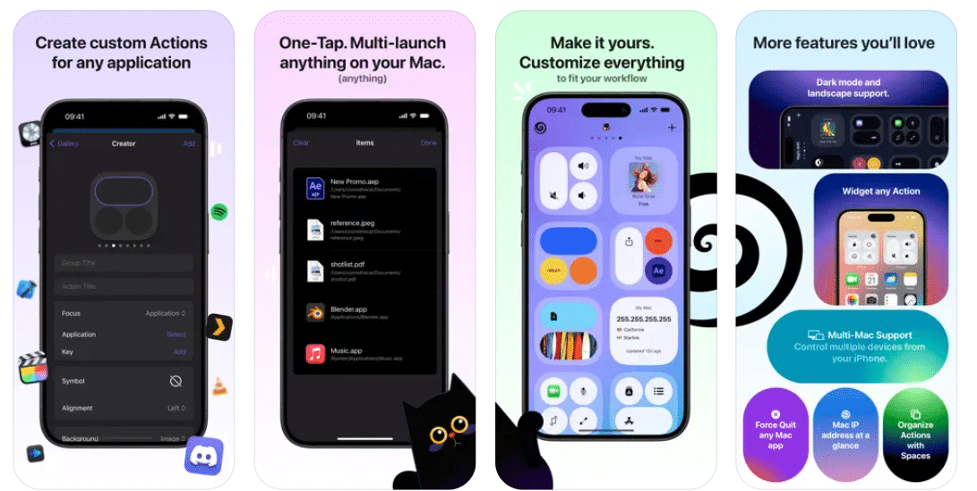 Gatewayの「スペース」機能を使用すると、アクションを直感的なグループに整理し、必要なコマンドを簡単に見つけて実行できます。ダークモードであろうと風景の向きであろうと、アプリはあなたの好みに適応します。また、アクションをウィジェットに変換するオプションを使用すると、ホーム画面からお気に入りのコマンドに直接アクセスできます。